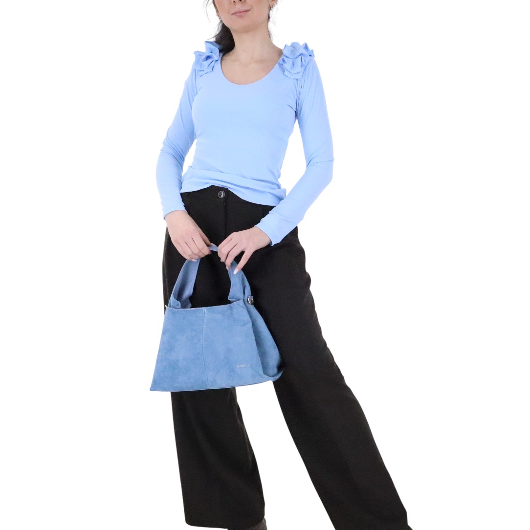 Női Póló, Egyéb, Méret: OneSize, Nőies anyagában bordázott enyhén rugalmas fodros díszel a vállán, Bevarrt cimke mérete: onesize